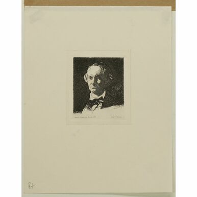 (1832 Paris - 1883 ebenda), Radierung/Papier, unten rechts in der Platte signiert und darunter bezeichnet, links "Peint et Gravé par Manet 1865", rechts "Imp. A. Salmon", Portrait des französischen Schriftstellers Charles Baudelaire, altersgemäßer Zustand, Darstellung mittig berieben, Darstellung 9 x 7,5 cm (HxB), Passepartout, Gesamtmaß 30 x 23,5 cm (HxB)