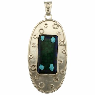 Ovaler Anhänger mit Emaille und Türkisen
