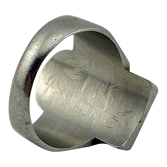 Dieser Ring ist ein zeithistorisches Dokument aus der „Festung Lorient“. Lorient war im Zweiten Weltkrieg einer der wichtigsten deutschen U-Boot-Stützpunkte in Frankreich. Nach der Landung der Alliierten in der Normandie 1944 wurde die Stadt zur Festung erklärt und von den deutschen Truppen bis Kriegsende im Mai 1945 gehalten. Solche Ringe wurden oft vor Ort von oder für die eingeschlossenen Soldaten als Erinnerung an die monatelange Belagerung gefertigt.