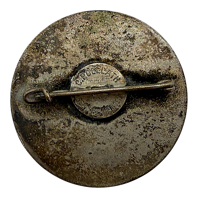 Porzellan, farbig bemalt und goldstaffiert; Buntmetall, versilbert und emailliert. Ein hochwertiges Konvolut zur Erinnerung an die IV. Olympischen Winterspiele 1936, bestehend aus einem Porzellanteller und dem offiziellen Besucherabzeichen. 1. Offizieller Gedenkteller der Manufaktur Rosenthal (Kunstabteilung Selb). Feine Porzellanmalerei mit einer winterlichen Hochgebirgslandschaft, am Rand die goldene Inschrift „OLYMPIADE 1936“ und die olympischen Ringe. 2. Offizielles Besucherabzeichen, hergestellt von C. Poellath, Schrobenhausen. Farbig emailliert mit der Darstellung der Alpspitze, einer Skisprungschanze und den olympischen Ringen, eingefasst von der Umschrift „IV. OLYMPISCHE WINTERSPIELE 1936 GARMISCH-PARTENKIRCHEN“. Beide Stücke in altersgemäß sehr guten Zustand ohne Beschädigungen, Teller D. 21,5 cm, Abzeichen D. 35 mm.