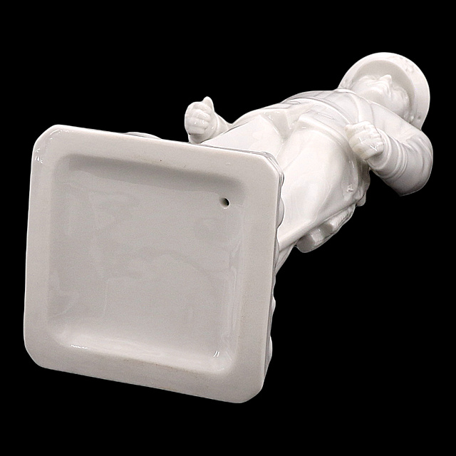 Porzellan, weiß, glasiert ungemarkt, Hochfeine, naturalistisch und detailreich modellierte Darstellung eines amerikanischen Kadetten der Militärschule West Point, in Paradeuniform mit Schärpe, Degen an der Seite und Schirmmütze. Der Kadett steht in aufrechter Haltung auf einem leicht strukturierten Sockel. Weiß glasiertes Porzellan mit glänzender Oberfläche, handwerklich präzise ausgearbeitet, altersgemäß guter Zustand, leichter Spannungsriss im Sockel, 25 x 7 x 7 cm (HxBxT)