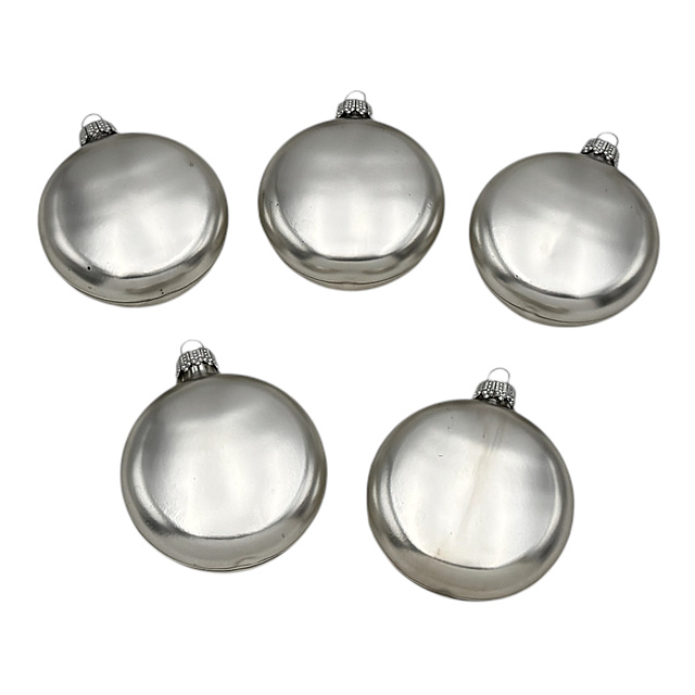Glas, innenversilbert, mit farbigen Abziehbildern und Glimmer. Ein Konvolut von fünf patriotischen Christbaumkugeln, gefertigt in der zweiten Hälfte des 20. Jahrhunderts nach historischen Vorbildern. Die silbernen Kugeln mit vertieften Medaillons, die mit Glimmer umrahmt sind, zeigen folgende Motive: 1. Reichskanzler Otto von Bismarck 2. Wilhelm I. 3. Kaiser Wilhelm II. 4. Friedrich Wilhelm III. 5. Der Reichsadler des Deutschen Kaiserreichs, Alle Kugeln in altersgemäß sehr gutem Zustand, D. je 7 cm.