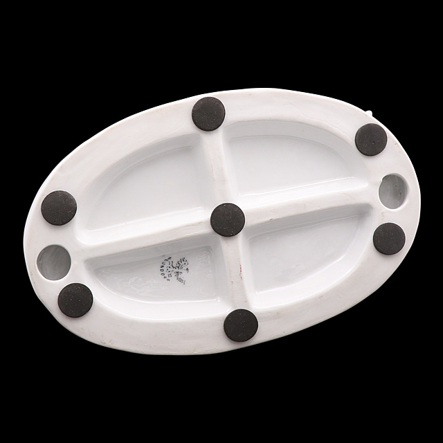 Porzellan, im Boden gemarkt, Darstellung Friedrichs des Großen, König von Preußen, in historischer Uniform zu Pferde. Die Figur ist aus weißem Porzellan gefertigt und zeigt eine fein modellierte Ausarbeitung von Pferd und Reiter. Die Zügel bestehen aus Stoffmaterial, altersgemäßer Zustand, 34 x 28 x 15 cm (HxBxT)
