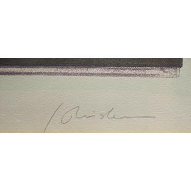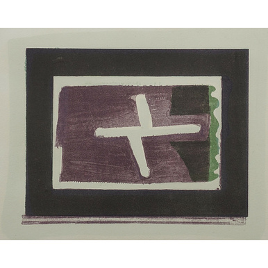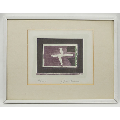 Maler, Zeichner und Grafiker (1911 Solingen - 1990 Köln), Farblithografie/Papier, unten rechts signiert, auflagenbezeichnet Exemplar 87/125, violette Felder mit grünen Überlappungen bilden mittig eine weiße abstrakte Form, altersgemäß guter Zustand, randgebräunt, Darstellung 16,5 x 21 cm (HxB), Passepartout, hinter Glas, gerahmt, Rahmen mit Kratzern, Gesamtmaß 31,5 x 41,5 cm (HxB)