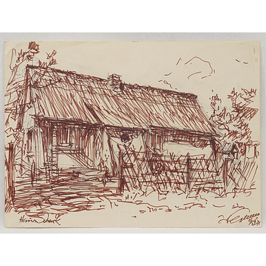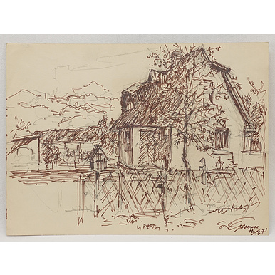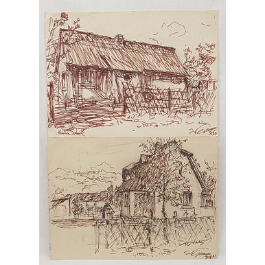 1) Walter Gemm Harzmaler (1898 Halberstadt - 1973 Osterwieck),  "Haus Schenk, Dierhagen", Faserstift über Blei/Papier, unten rechts  handsigniert, datiert 1971, unten links betitelt, traditionelles Wohnhaus in Dierhagen, Ostsee, guter Zustand, die Ecken etwas knickspurig, Unterkante mit kleinen Abrieben, Gesamtmaß 26,5 x 36,5 cm (HxB) 2) Walter Gemm Harzmaler (1898 Halberstadt - 1973 Osterwieck),  "Wohnhaus in Dierhagen, Ostsee", Faserstift über Blei/Papier, unten rechts  handsigniert, datiert 1971, Blick auf ein größeres Wohnhaus mit Schuppen in Dierhagen, guter Zustand, leicht berieben, Gesamtmaß 27 x 36,5 cm (HxB)