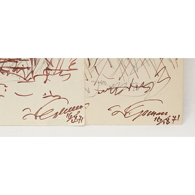 Walter Gemm, Two studies of houses in Dierhagen at the Baltic Sea, colour pen over pencil drawing 1971, each signed and dated, one titled, good condition, sligthly rubbed, margins with smaller losses or stains and bends