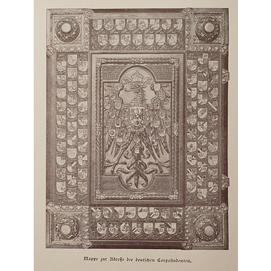 1899, Ein Denkmal deutscher Dankbarkeit, herausgegeben von A. de Grousilliers, 116 ganzseitige Tafeln, auf den Tafeln auch mehrere Dedikationen des Kösener Verbandes sowie des berühmten Kredenztischs der Deutschen Studentenschaft, altersgemäß guter Zustand, 193 Seiten, Selbstverlag A. de Grousilliers, Berlin / Schallehn und Wollbrück, Wien